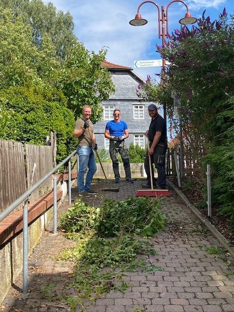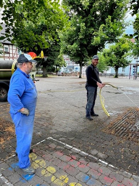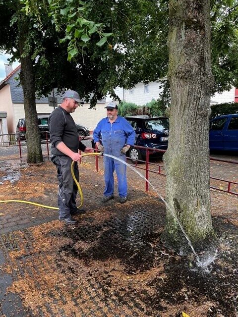 Wässern der Linden auf dem Schulplatz und Pflegen des Erich-Poggensee-Wegs